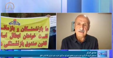 چهارشنبه, 8. نوامبر 2023 - 15:21 صادق کار نگاه سوم- اعتراضات بازنشستگان و کارگران- بحرانهای محیط زیستی در ایران گفتگوی صادق کار با تلویزیون آرین تی وی ویدئو افزودن دیدگاه جدید نام شما موضوع دیدگاه About text formats متن ساده No HTML tags allowed. نشانیهای وب و پست الکتونیکی به صورت خودکار به پیوندها تبدیل میشوند. خطوط و پاراگرافها بطور خودکار اعمال میشوند. CAPTCHA Get new captcha! چه کدی در تصویر میبینید؟ کاراکترهای نمایش داده شده در تصویر را وارد کنید. لطفا حروف را با خط فارسی و بدون فاصله وارد کنید چاپ