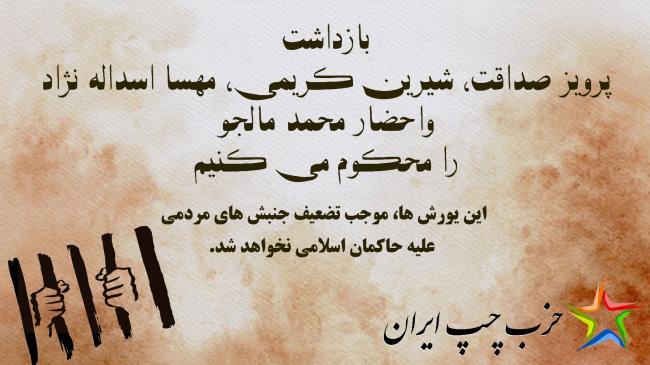 بازداشت پرویز صداقت،شیرین کریمی،مهسا اسداله نژاد و احضار محمد مالجو را محکوم میکنیماین یورشها، موجب تضعیف جنبش های مردمی علیه رژیم اسلامی نخواهد شد