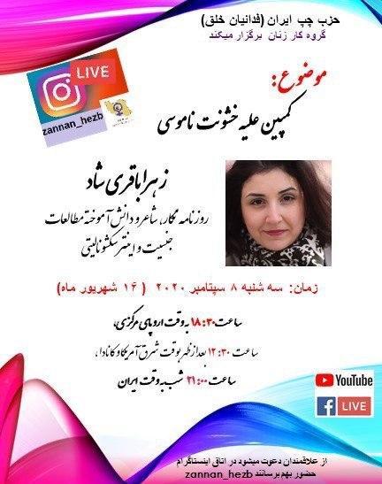 زهرا باقری شادحزب چپ ایران (فدائیان خلق) گروه کار زنان برگزار میکندکمپین علیه خشونت ناموسی