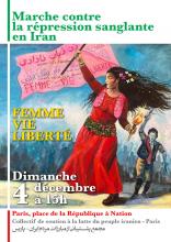 پاریس ۴ دسامبر، راهپیمایی علیه سرکوب خونین در ایران