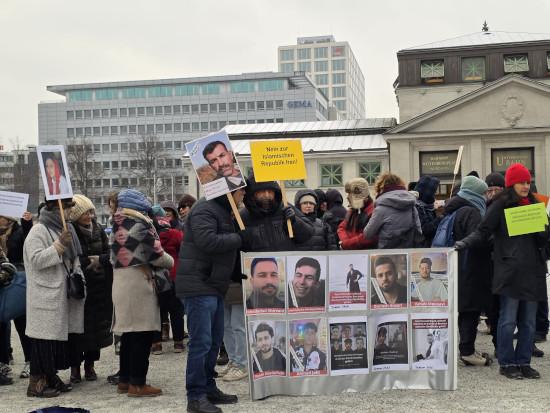 آن ها با دادن شعارهائی مختلف از جمله ـ جمهوری سکولار، دمکراسی پایدارـ جمهوری اسلامی نمیخواهیم ـ ،زن، زندگی، ازادی ـ مرگ بر جمهوری اسلامی ـ آزادی برای ایران ـ نه به اعدام ـ آزادی همه رندانیان سیاسی ـ دمکراسی برای ایران ـ همبستگی بین المللی و ... به زبان های المانی و فارسی با مردم ستم دیده ایران و خانواده های جانباخته اعلام همبستگی کردند. همچنین با خواندن قطعنامه ای ضمن تاکید بر خواست های بالا، مخالفت خود را با دخالت نظامی اعلام کردند.