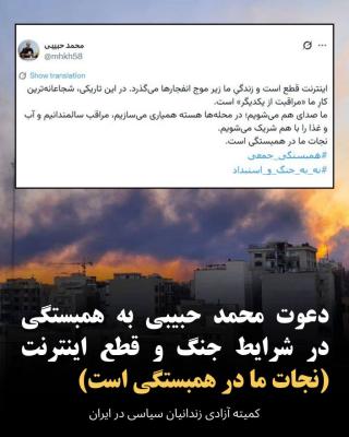 حبیبی در پایان پیام خود تأکید کرد: «نجات ما در همبستگی است.»