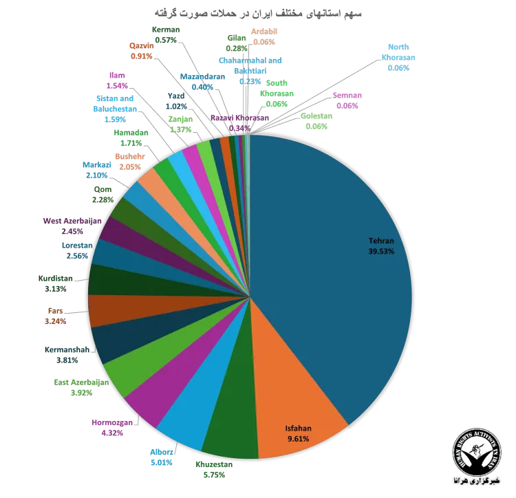 پس از تهران، استانهای مرکزی و صنعتی کشور از جمله اصفهان و خوزستان نیز سهم قابل توجهی از حملات را تجربه کردهاند.