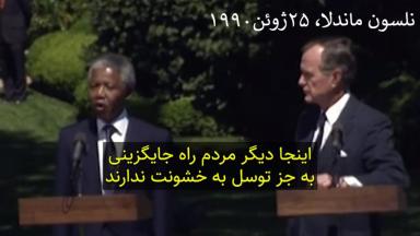 نلسون ماندلا، ۲۵ژوئن۱۹۹۰:از ما صلحطلبتر کسی نیست، اگرمجبوربه خشونت شدهایم یعنی راه دیگری نداریم